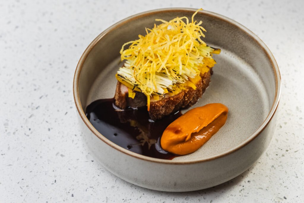 Tariga takes great pride in the aesthetics of her tasting menu, sparing no expense when it comes to eye-catching presentation and artisanal ingredients. Her opening bite, which is brought to the table in a carved-out book, perfectly exemplifies this. This unique plating is something she admits to keeping in her back pocket till the opportunity to tell her own story.
